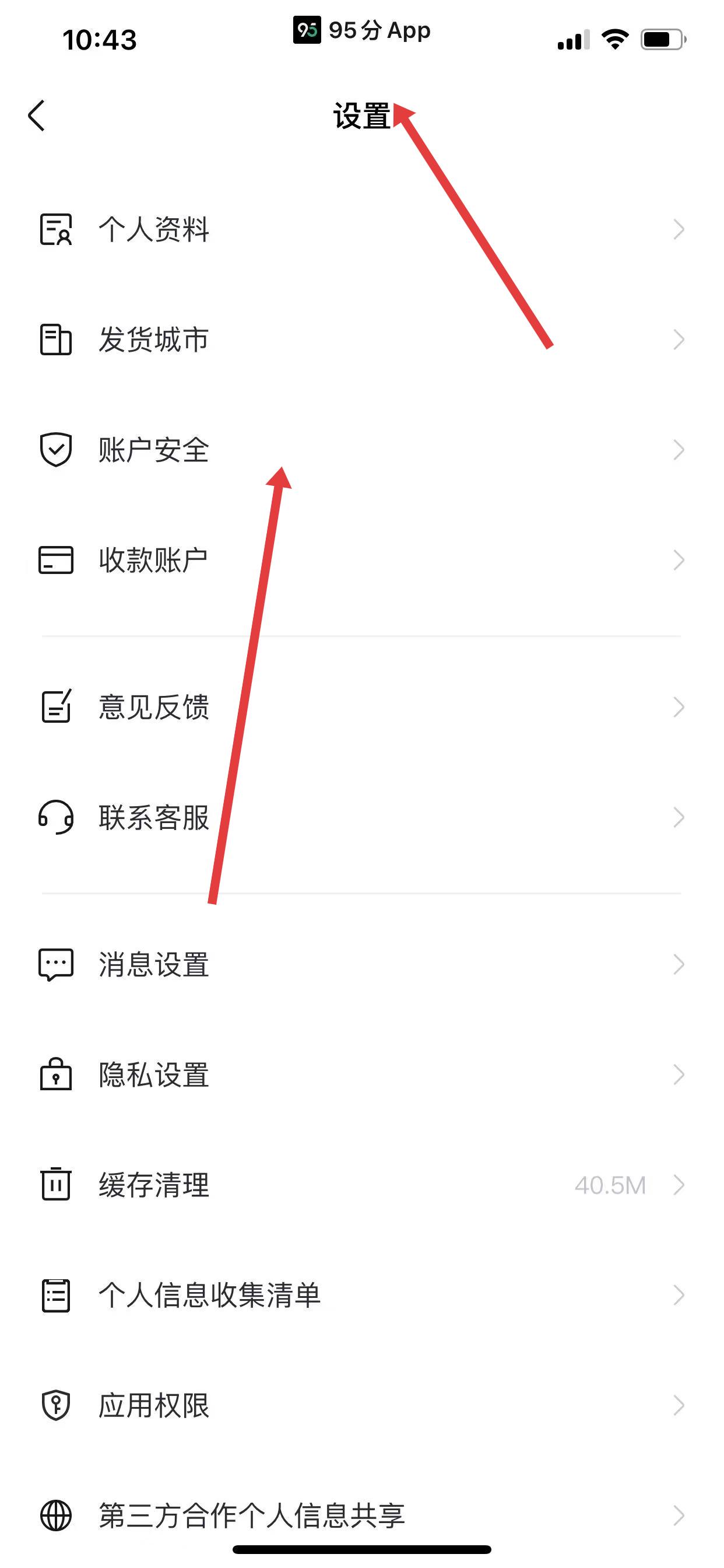1、在“我的”頁面,點(diǎn)擊右上角的設(shè)置圖標(biāo),進(jìn)入設(shè)置頁面后,點(diǎn)擊賬戶安全。