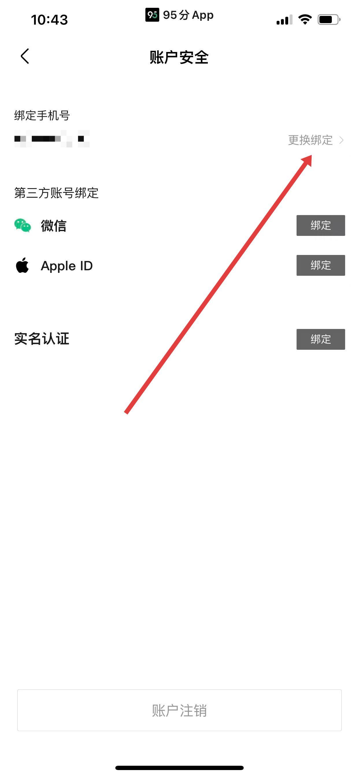2、在賬戶安全頁面,點(diǎn)擊綁定手機(jī)號(hào)右側(cè)的更換綁定。