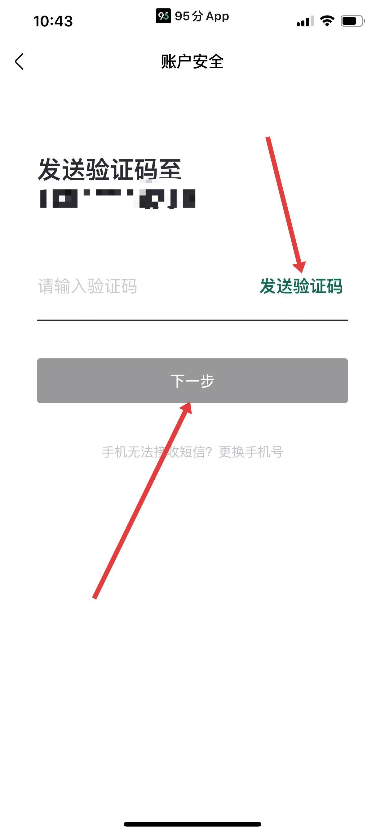3、點(diǎn)擊發(fā)送驗(yàn)證碼,將收到的原手機(jī)號(hào)驗(yàn)證碼輸入后,點(diǎn)擊下一步。