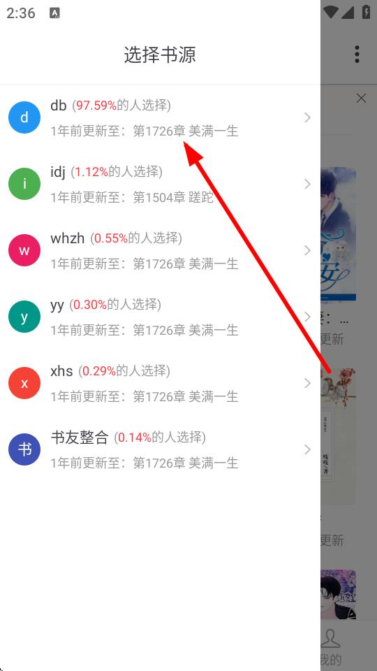 2、進(jìn)入小說頁面后,選擇合適的書源若有多個書源選項(xiàng),點(diǎn)擊進(jìn)入小說閱讀界面。