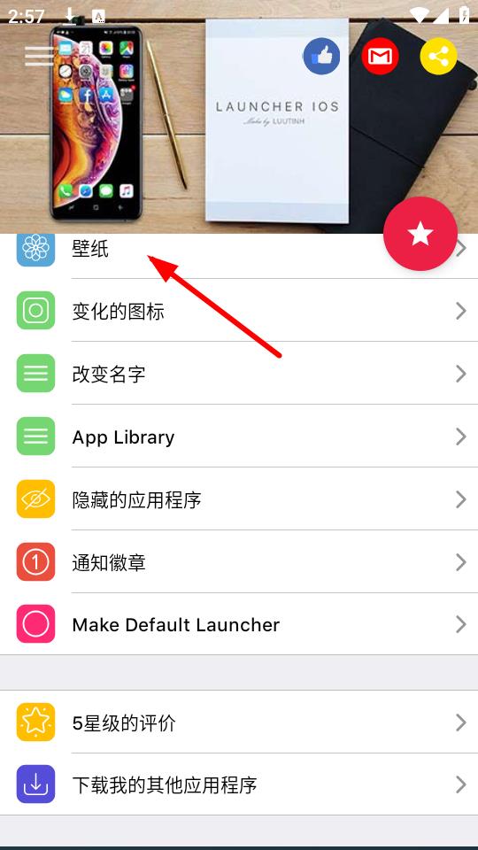 1、打開ios launcher應(yīng)用,在主界面點擊壁紙選項,準(zhǔn)備更換桌面壁紙。
