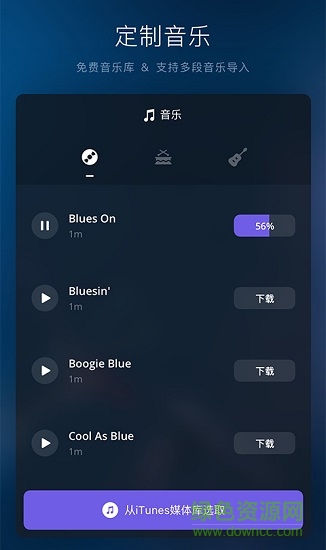 【音樂素材】自帶在線樂庫,支持讀取本地音樂,視頻提取音樂。還可以通過文件管理器、微信、qq等導入,豐富你的音樂素材庫。