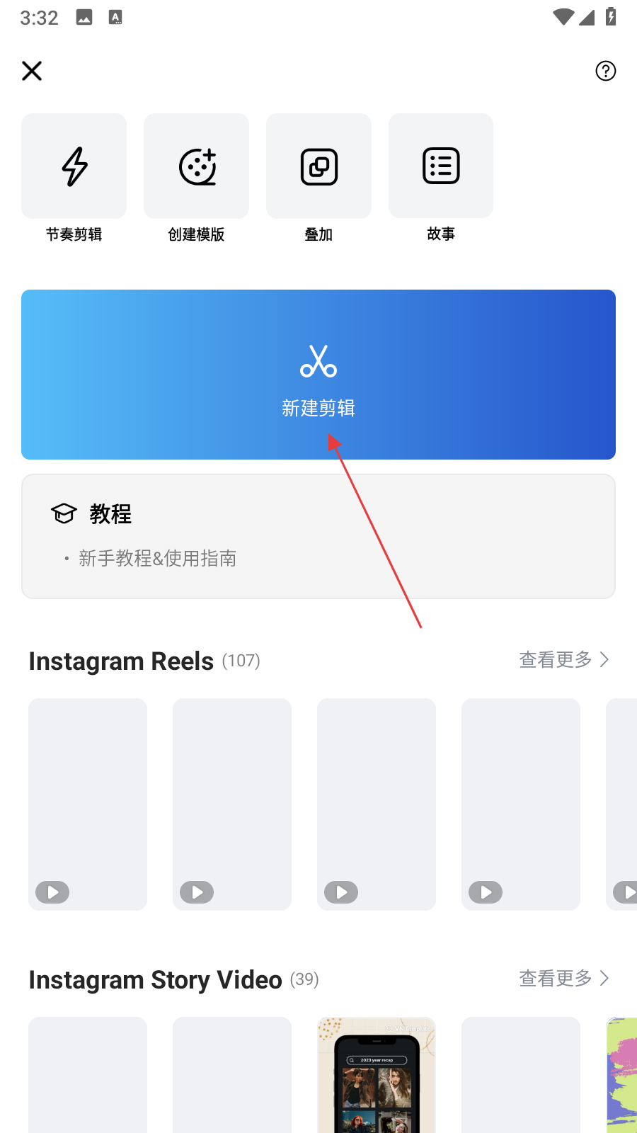 1、打開VN視頻剪輯應用,點擊新建剪輯按鈕,進入項目編輯模式選擇界面。