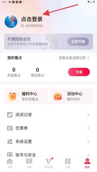 2、點擊后進入個人中心頁面,點擊正上方點擊登錄的功能按鈕即可跳轉(zhuǎn)至該頁面。