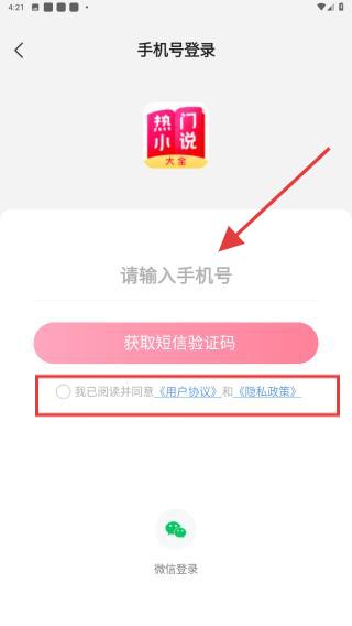3、在登錄頁面輸入手機號,并獲取短信驗證碼,勾選已閱讀并同意用戶協(xié)議和隱私政策后即可登錄。