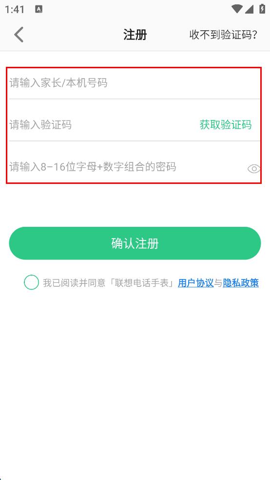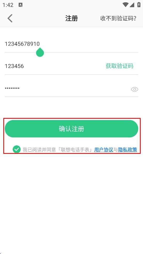 4、勾選我已閱讀并同意聯(lián)想電話手表用戶協(xié)議與隱私政策,點(diǎn)擊確認(rèn)注冊完成注冊。