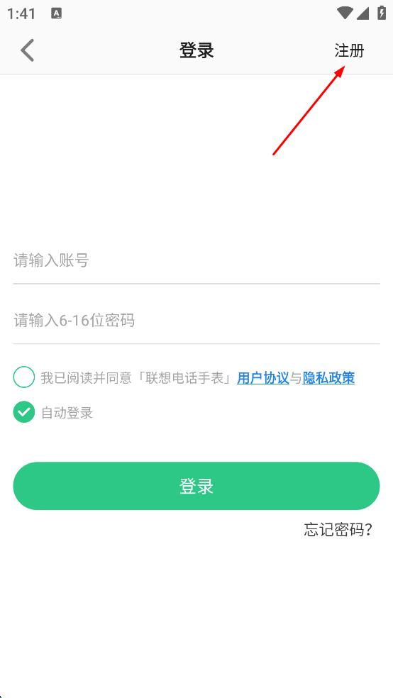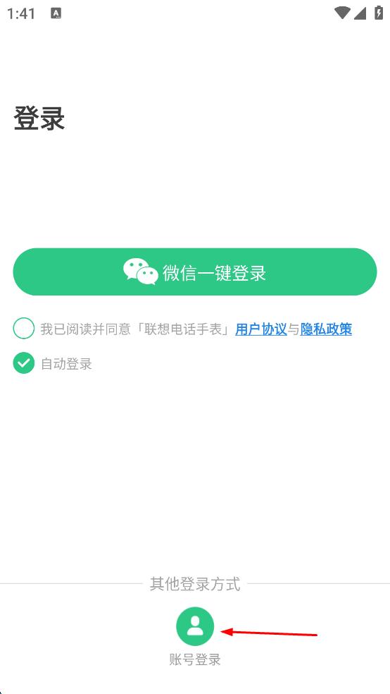 1、打開聯(lián)想電話手表APP登錄頁面,點(diǎn)擊賬號登錄,進(jìn)入賬號登錄界面。