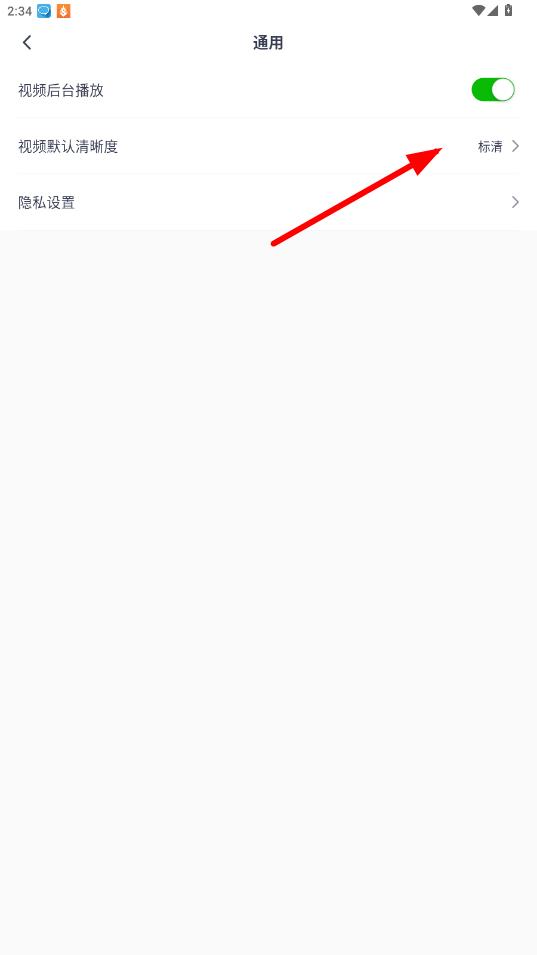 4、在通用設置頁面中,點擊視頻默認清晰度選項,選擇想要設置的清晰度,即可完成視頻清晰度的修改。