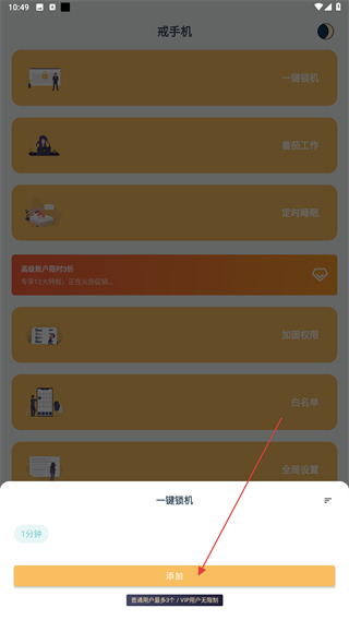 4、戒手機的番茄鐘,利用番茄工作法的鎖機,勞逸結合,效率最大化。