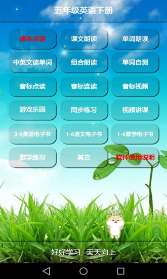 君政教育五年級(jí)英語(yǔ)下冊(cè)app是一款口碑極好的小學(xué)生英語(yǔ)電子課本軟件。功能包括教材點(diǎn)讀、習(xí)題解讀、單詞背誦、口語(yǔ)練習(xí)等等。采用圖文并茂以及有聲朗讀等形式將英語(yǔ)課本上的知識(shí)變得簡(jiǎn)單易懂,有助于學(xué)生們理解和記憶!
