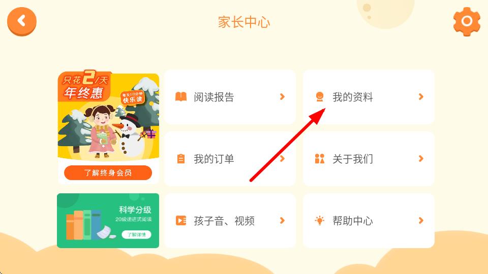 2、在家長中心頁面里,找到并點擊我的資料選項。