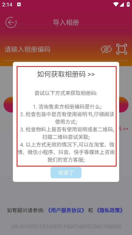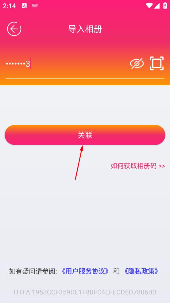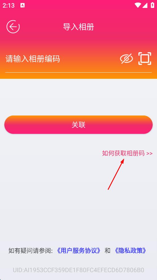 3、獲取相冊(cè)碼后,在請(qǐng)輸入相冊(cè)編碼欄輸入相冊(cè)碼。