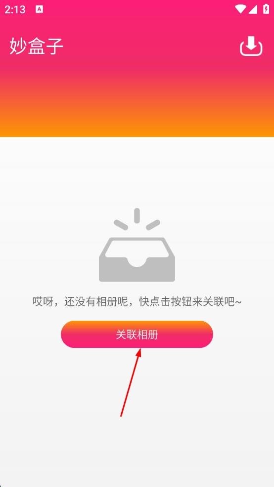 1、打開(kāi)妙盒子APP,點(diǎn)擊關(guān)聯(lián)相冊(cè)。