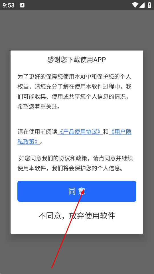 1、打開浙里學(xué)車APP,在彈出的提示頁面點(diǎn)擊同意。