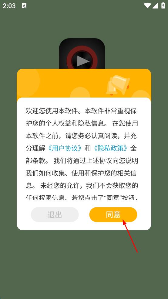 1、打開視頻類軟件,彈出用戶協(xié)議和隱私政策提示,仔細(xì)閱讀后點擊“同意”,進(jìn)入軟件主界面。