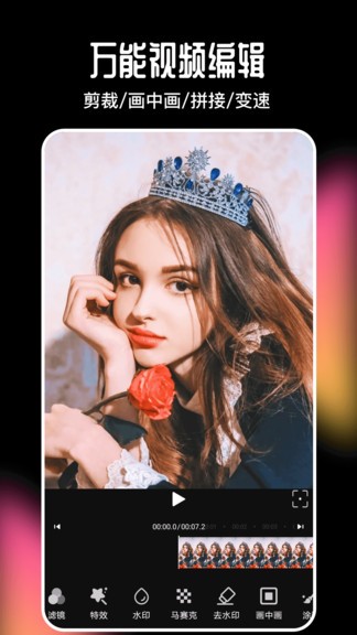 - 視頻剪輯、拼接、畫面裁剪、旋轉(zhuǎn)、畫中畫