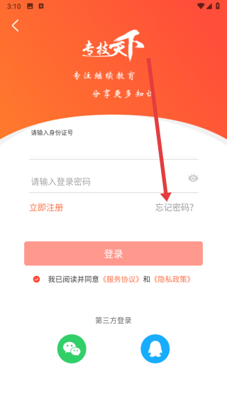 1、在登錄頁面中,若忘記了密碼,可以點(diǎn)擊下方忘記密碼按鈕進(jìn)行解決。