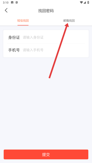 2、在進(jìn)入到找回密碼頁面中,可以點(diǎn)擊右側(cè)按鈕使用郵箱找回。