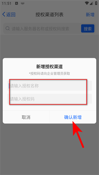 3、在彈窗中輸入授權(quán)名稱和授權(quán)碼,點(diǎn)擊確認(rèn)新增。