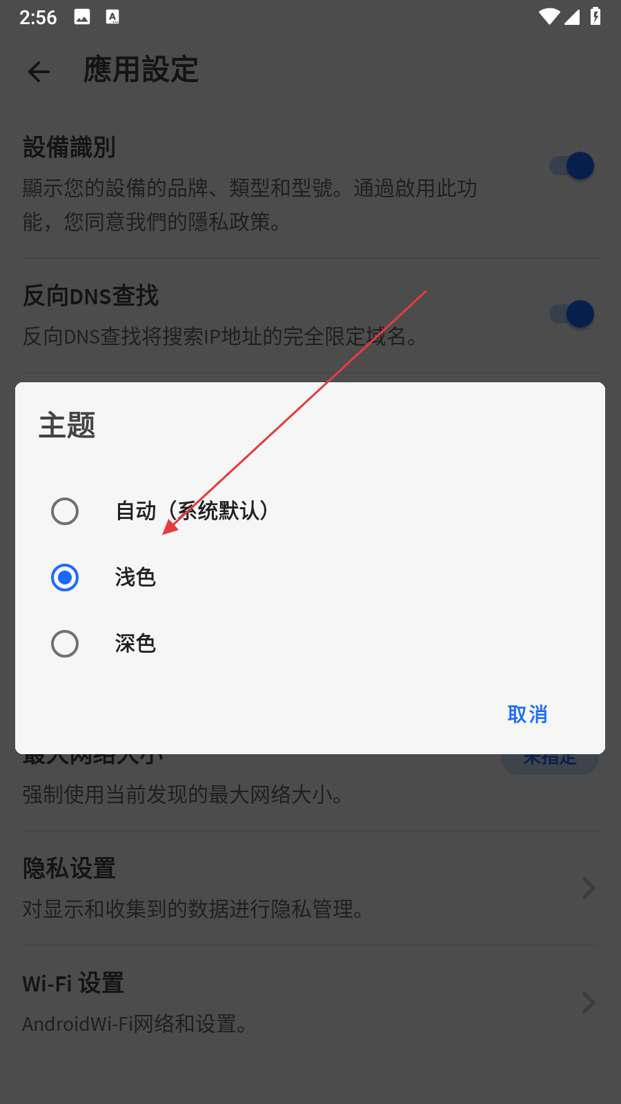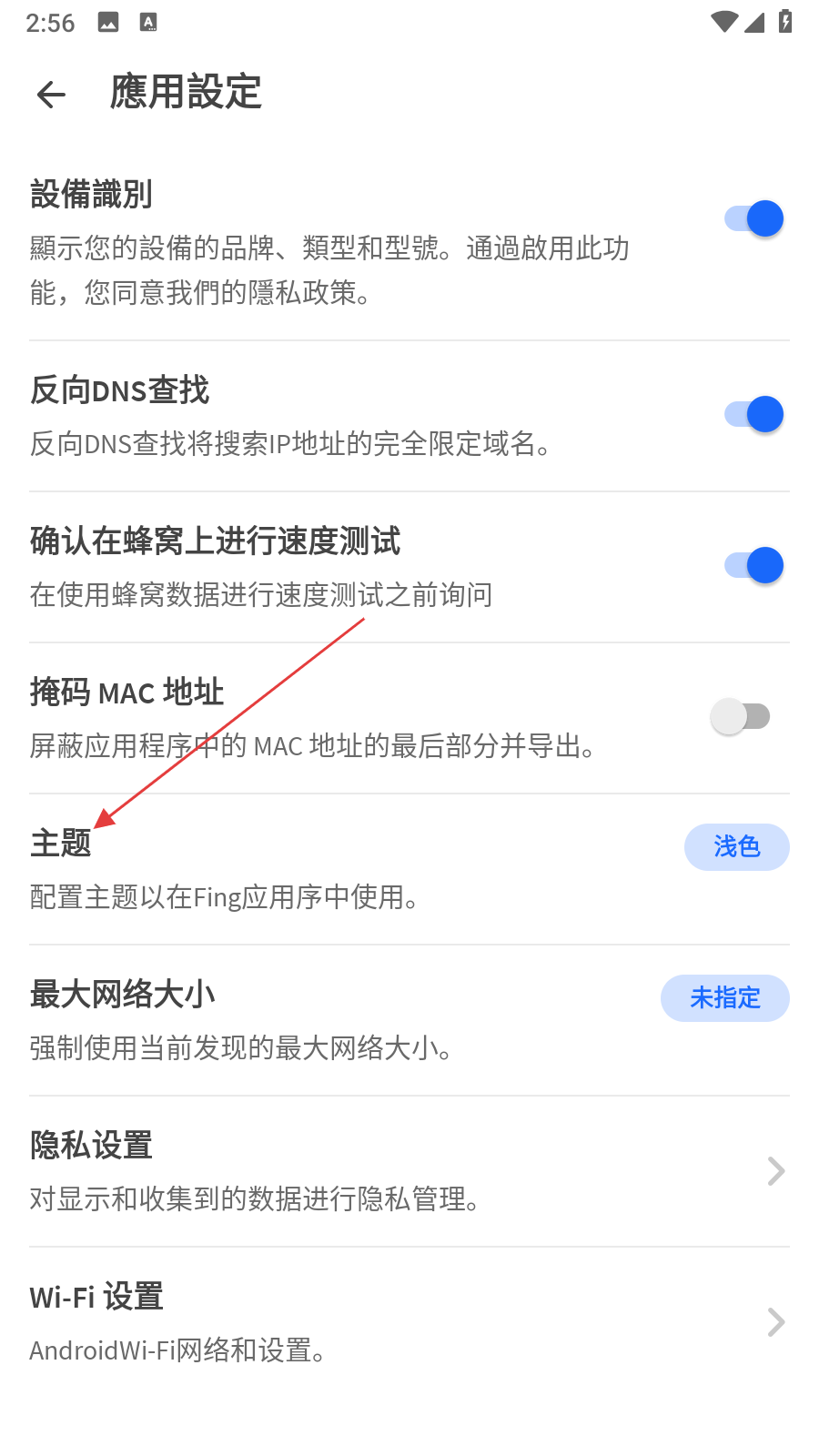 3、在應(yīng)用設(shè)置界面里,向下滑動屏幕找到主題設(shè)置項,點擊主題。