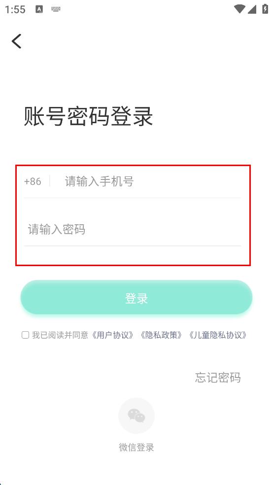 4、填寫(xiě)好手機(jī)號(hào)和密碼后,勾選“我已閱讀并同意用戶(hù)協(xié)議,隱私政策,兒童隱私協(xié)議選項(xiàng),然后點(diǎn)擊“登錄”按鈕,即可嘗試登錄掌心寶貝app。