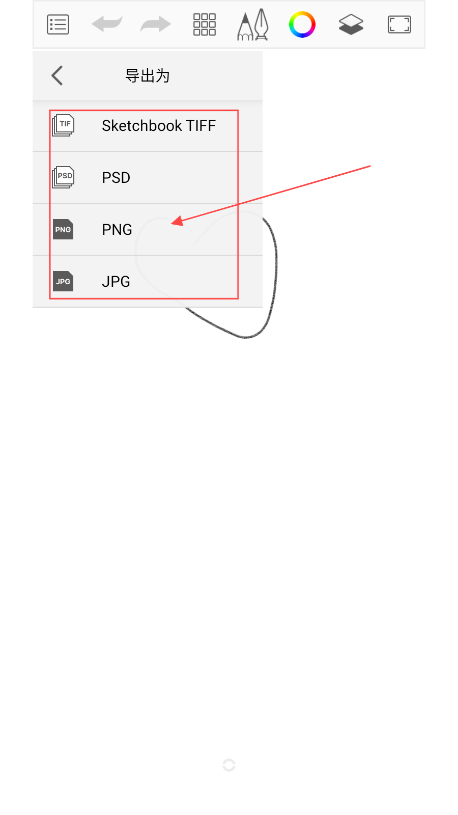 3、在導(dǎo)出為界面,選擇想要保存的圖片格式,如PNG、JPG等,選擇完成后,軟件會將圖片保存到手機(jī)默認(rèn)的存儲位置,進(jìn)而保存到相冊中。