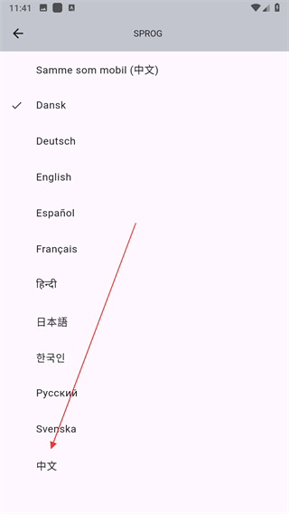 3、進(jìn)入語言選擇界面后,在列表中找到并點(diǎn)擊中文選項(xiàng)。