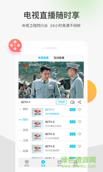 1.豐富高清電視頻道直播:集合80路高清央視、全國(guó)省級(jí)衛(wèi)視及四川地市電視頻道、11路廣播頻率信號(hào),24小時(shí)不間斷直播,隨時(shí)隨地,想看就看。