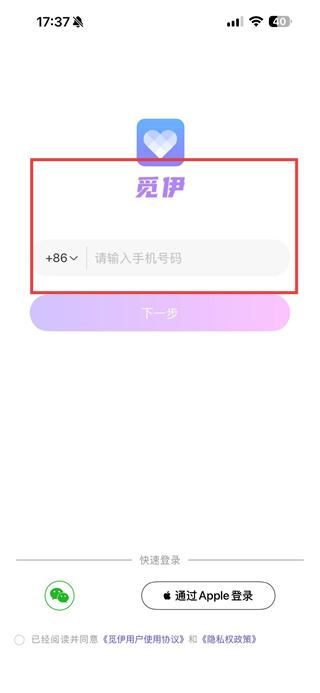 1、打開(kāi)覓伊APP,輸入手機(jī)號(hào)碼,點(diǎn)擊一步。
