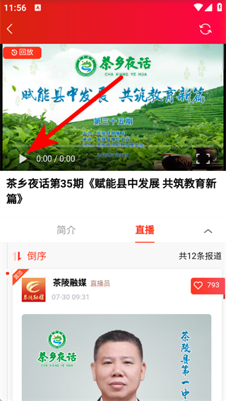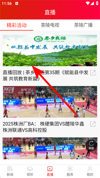 1、打開茶陵融媒app,點擊底部直播,進入直播的頁面。