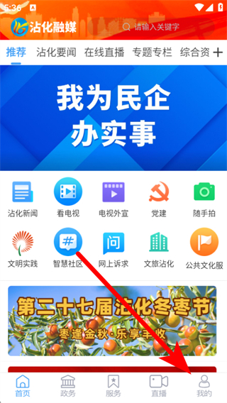 1、打開沾化融媒app,在首頁點擊底部我的,進入個人的頁面。