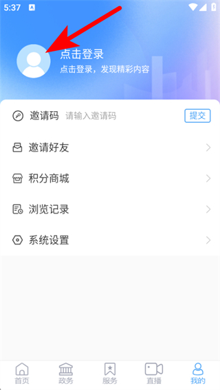 2、在個人頁面點擊點擊登錄的區(qū)域,進入用戶登錄的頁面。