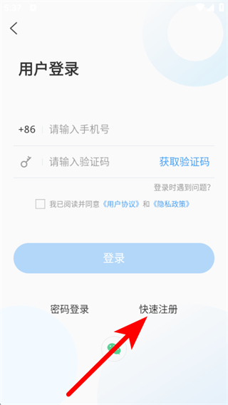 3、在用戶登錄頁面點擊快速注冊,進入用戶注冊的頁面。