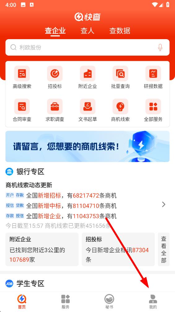 1、打開(kāi)快查APP,點(diǎn)擊底部導(dǎo)航欄中的我的選項(xiàng),進(jìn)入個(gè)人相關(guān)界面。