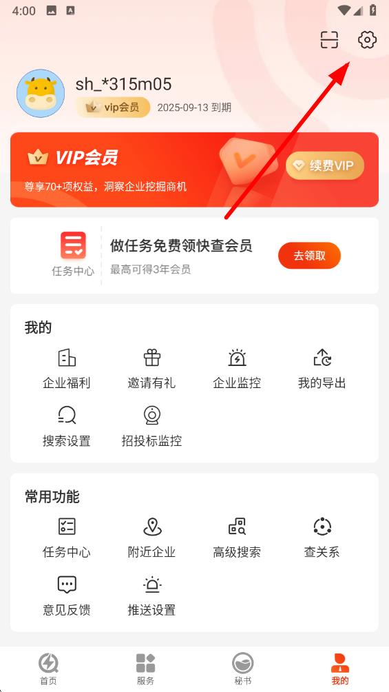 2、在個(gè)人界面右上角,點(diǎn)擊設(shè)置圖標(biāo),進(jìn)入設(shè)置頁(yè)面。