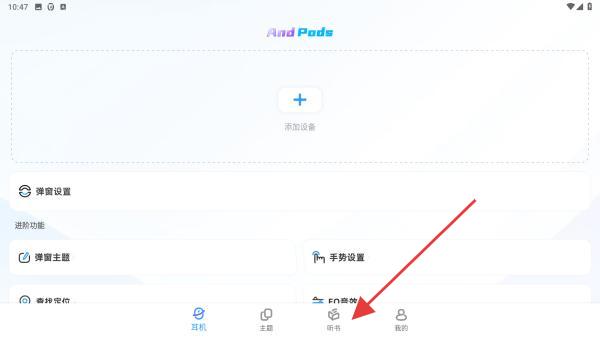 1、啟動(dòng)AndPods應(yīng)用軟件,在首頁(yè)下方導(dǎo)航欄中,點(diǎn)擊聽書的圖標(biāo)。