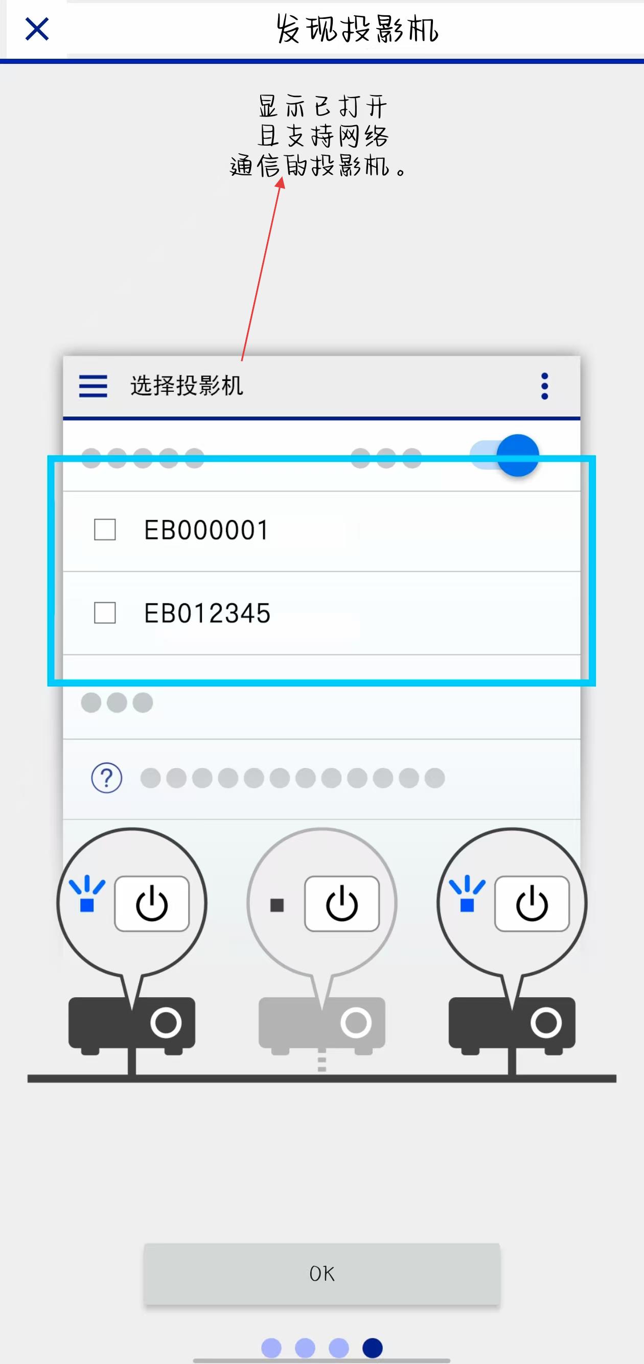 3、回到應(yīng)用主界面之后會(huì)顯示要連接的投影機(jī)并點(diǎn)擊。