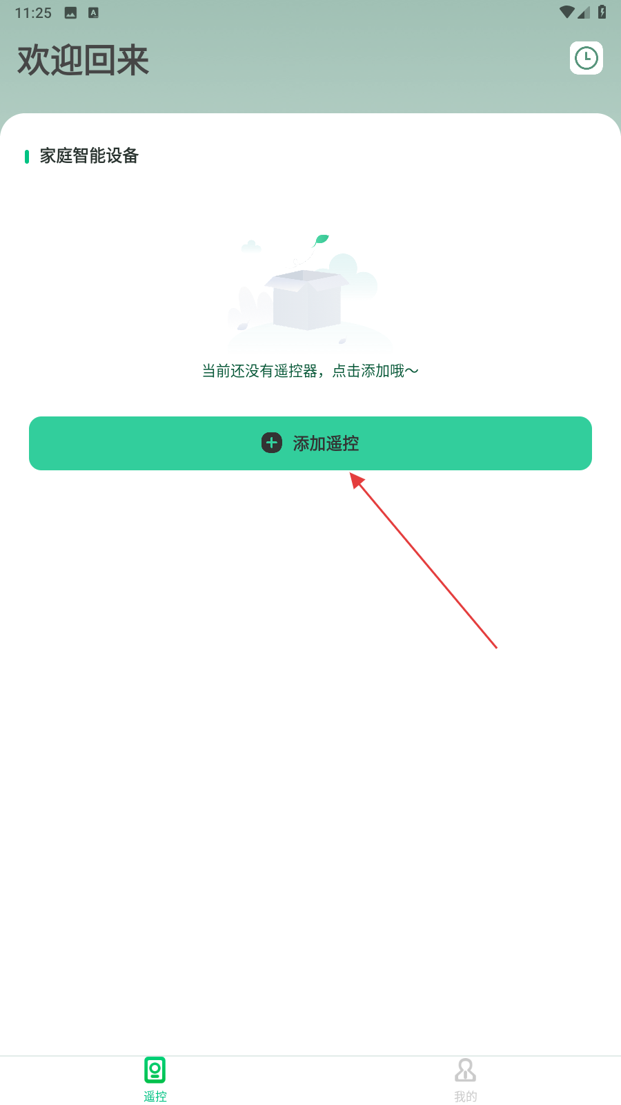 1、打開美空調(diào)遙控器APP,在首頁內(nèi)點(diǎn)擊添加遙控的功能按鈕。