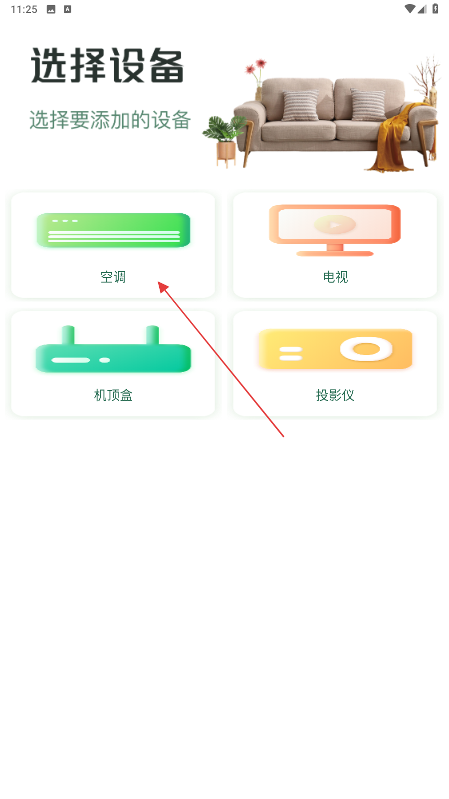 2、在選擇設(shè)備的頁面內(nèi),點(diǎn)擊空調(diào)的設(shè)備。