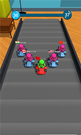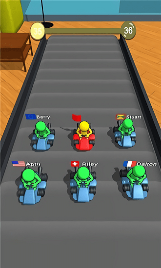 你見過在跑步機上開的卡丁車嗎,這樣一款跑步機卡丁車手游就是這樣的設(shè)定,你們比賽的場地在跑步機上面,而你們贏得比賽的方式不是達到終點,而是努力在跑步機上不摔下去,當(dāng)然了,你可以通過撞擊他人來把他們給弄下跑道,游戲非常的有意思,讓你能夠笑得不停,快來一起玩吧!