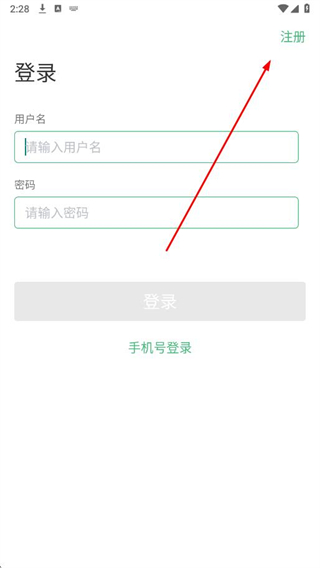 1、打開靈犀心理APP,在登錄頁面點(diǎn)擊右上角的注冊(cè)選項(xiàng)。