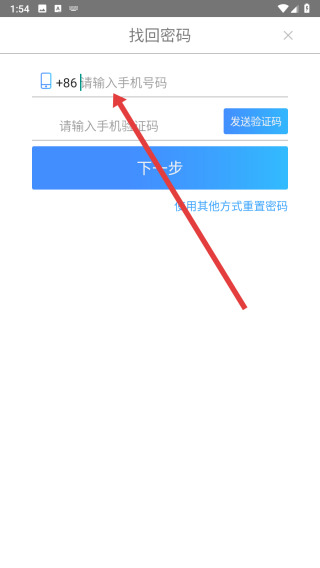 2、跳轉(zhuǎn)到找回密碼頁(yè)面,可以點(diǎn)擊上方輸入填寫手機(jī)號(hào)碼,以便發(fā)送驗(yàn)證碼完成后續(xù)操作。