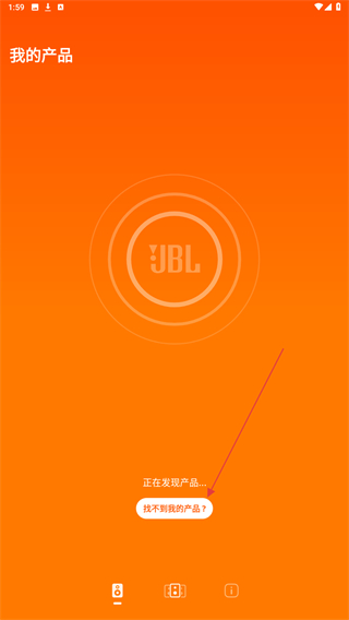 1、打開jblportable的應(yīng)用,進入首頁點擊下方找不到我的產(chǎn)品區(qū)域位置。