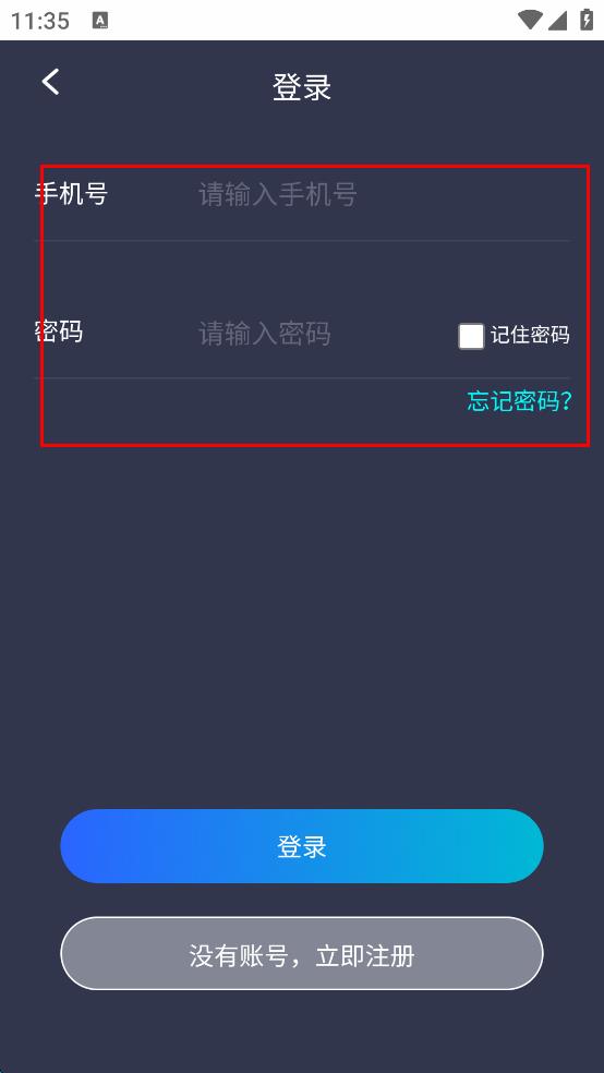4、在賬號登錄信息填寫頁面,輸入正確的手機號碼和密碼后,點擊“登錄”按鈕,完成登錄操作。