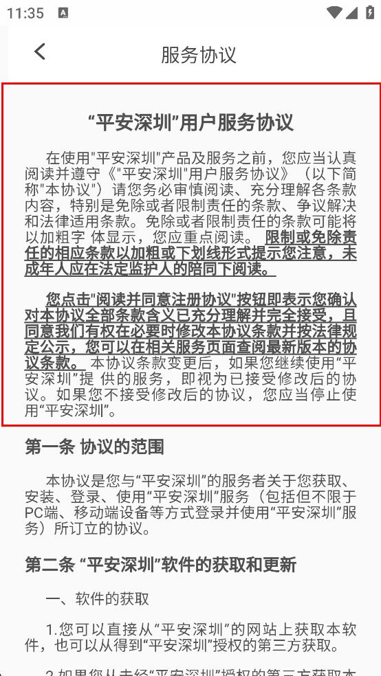 2、在登錄頁面,詳細的閱讀系統(tǒng)的用戶服務(wù)協(xié)議,閱讀結(jié)束后進入下一步進入到登錄選擇頁面。