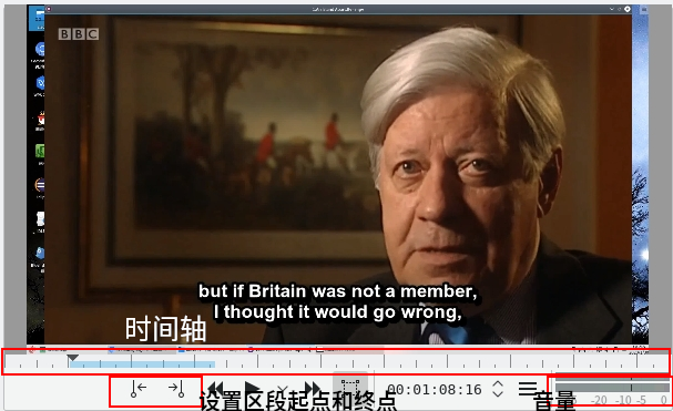 播放區(qū)段:被框出的兩個按鈕用于設置預覽窗口時間軸上預覽區(qū)段的起點和終點,“播放”按鈕右部的小箭頭下拉框中可以選擇“播放區(qū)段”。