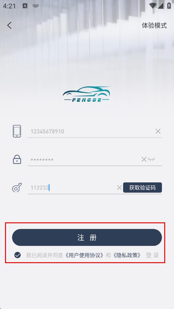 4、勾選我已閱讀并同意用戶使用協(xié)議和隱私政策,然后點(diǎn)擊“注冊(cè)”按鈕,完成注冊(cè)操作。