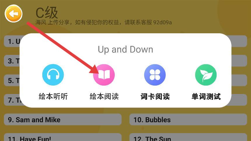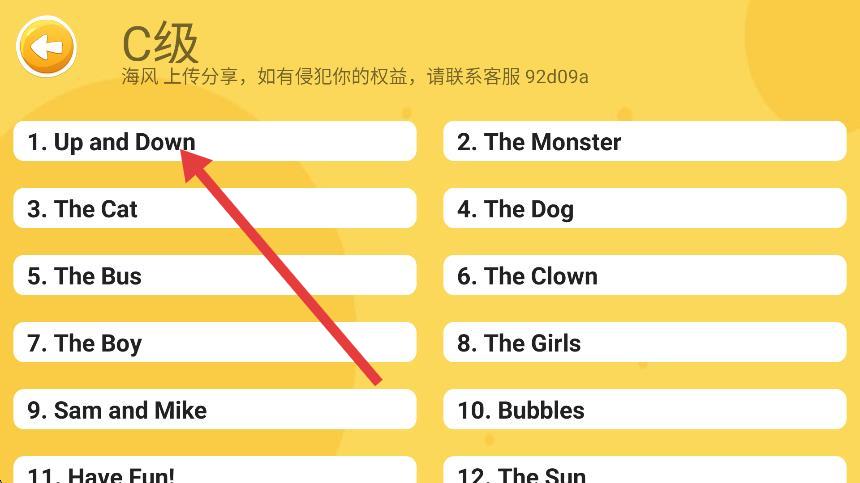 3、進入對應(yīng)等級界面后,點擊你想閱讀的繪本名稱。