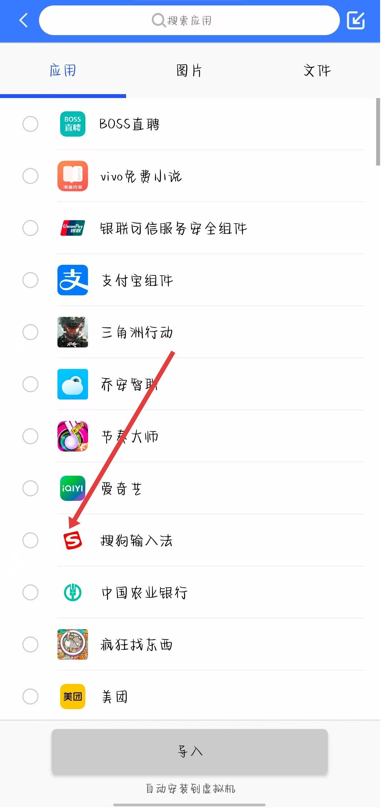 3、在應(yīng)用選擇列表中,找到并勾選需要導(dǎo)入的應(yīng)用。