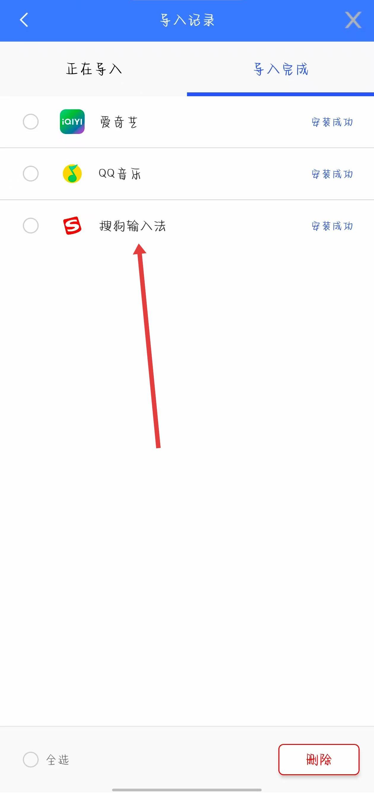 4、等待導(dǎo)入過程完成,在導(dǎo)入記錄頁面查看應(yīng)用是否成功導(dǎo)入。